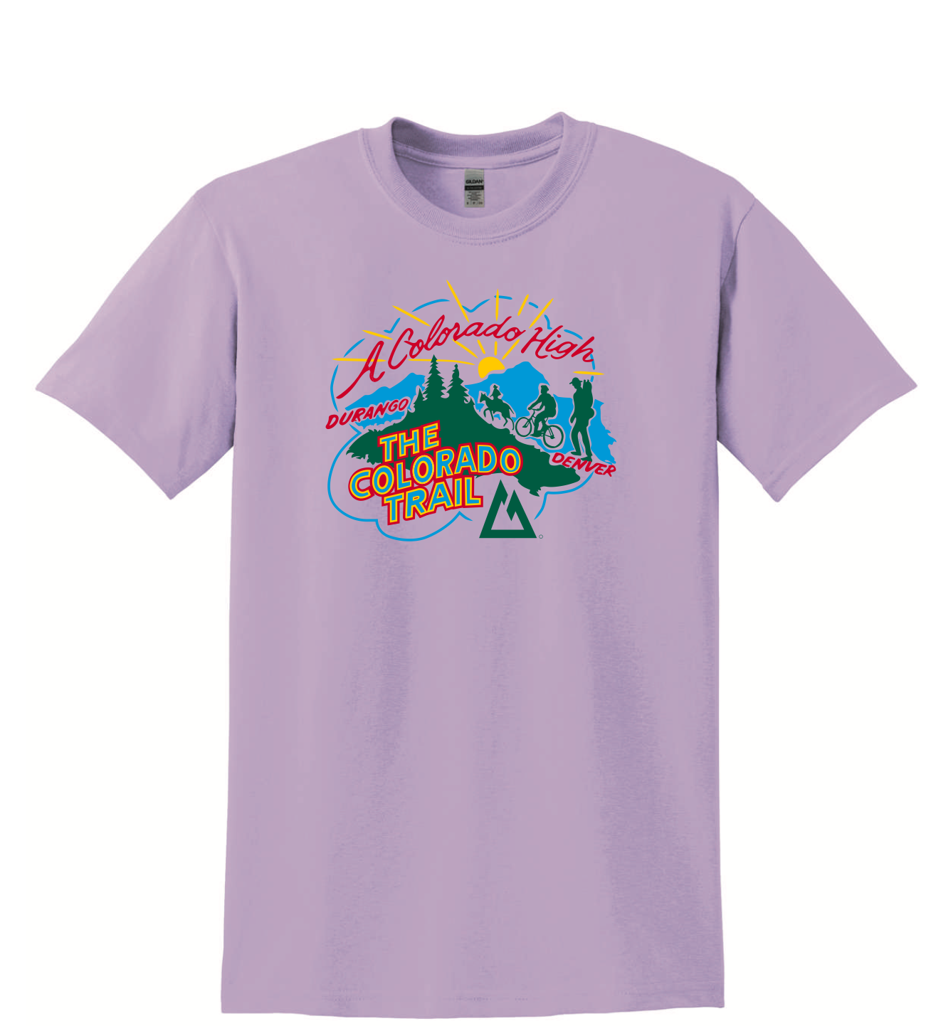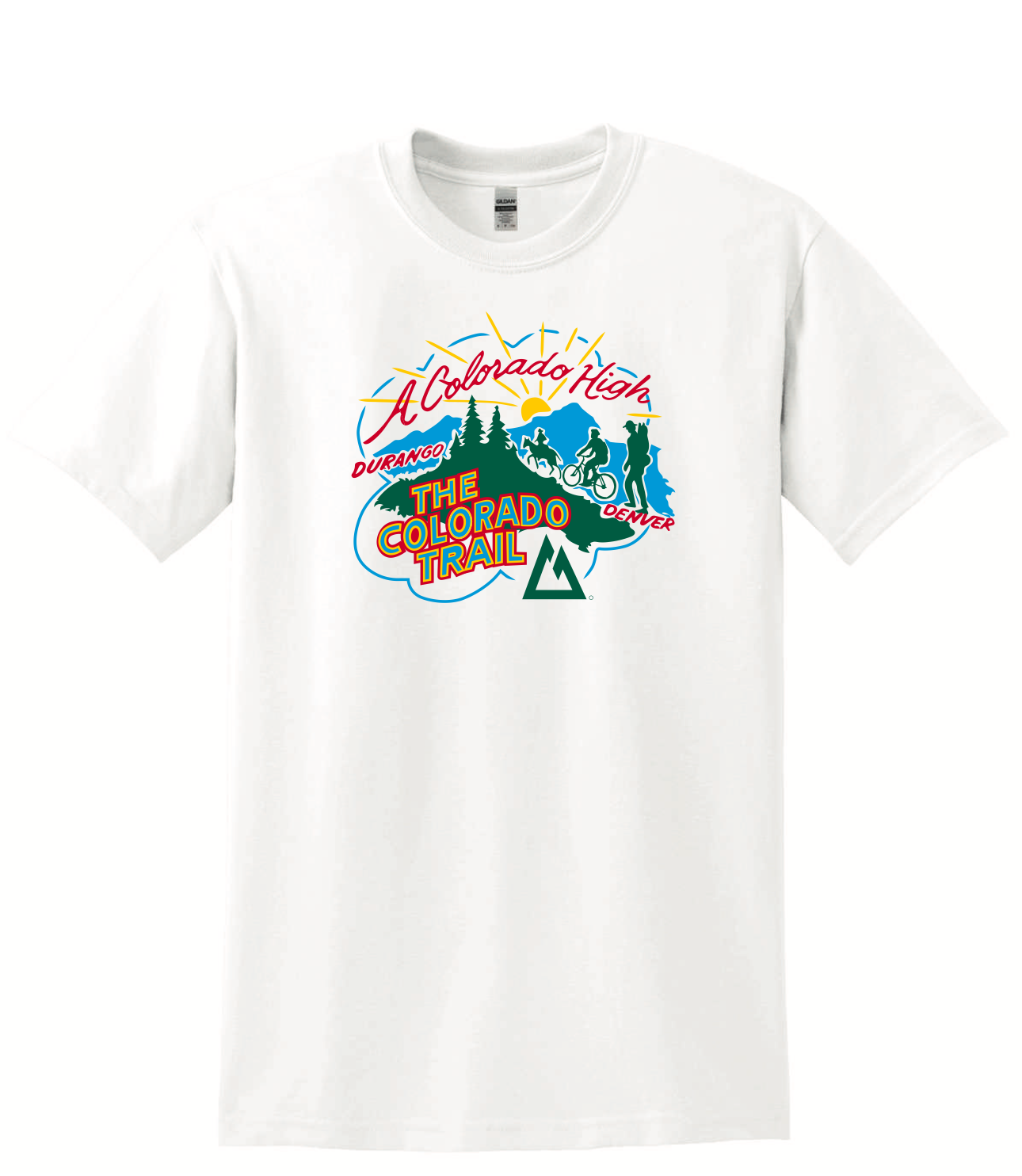 Mother of The Colorado Trail, Gudy Gaskill (and others) wore this shirt as she led the very first, celebratory CT thru-hike, the “Trail-A-Bration,” in 1988, the first year the trail was open. Her favorite, she was also wearing it in her iconic photo.